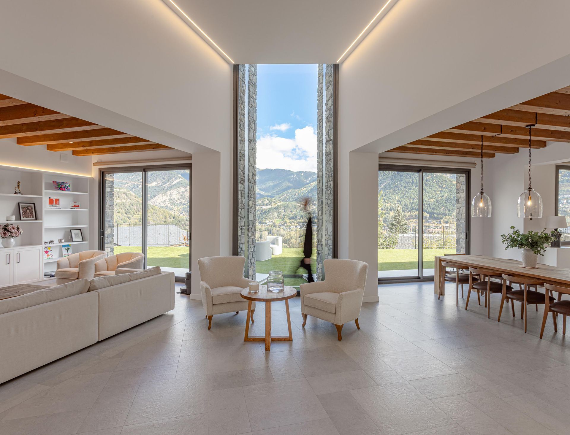 L'objectiu: guanyar connexió sense perdre intimitat. El resultat són cinc volums diferenciats, inspirats en les bordes tradicionals d’Andorra. Cada volum és una atmosfera única dins d’un conjunt que batega unit. El volum principal conté la sala d’estar i l'espai a doble alçada que regala amplitud. Els volums centrals: menjador i cuina. L’últim, lleuger, un menjador exterior pensat per assaborir plegats el paisatge.