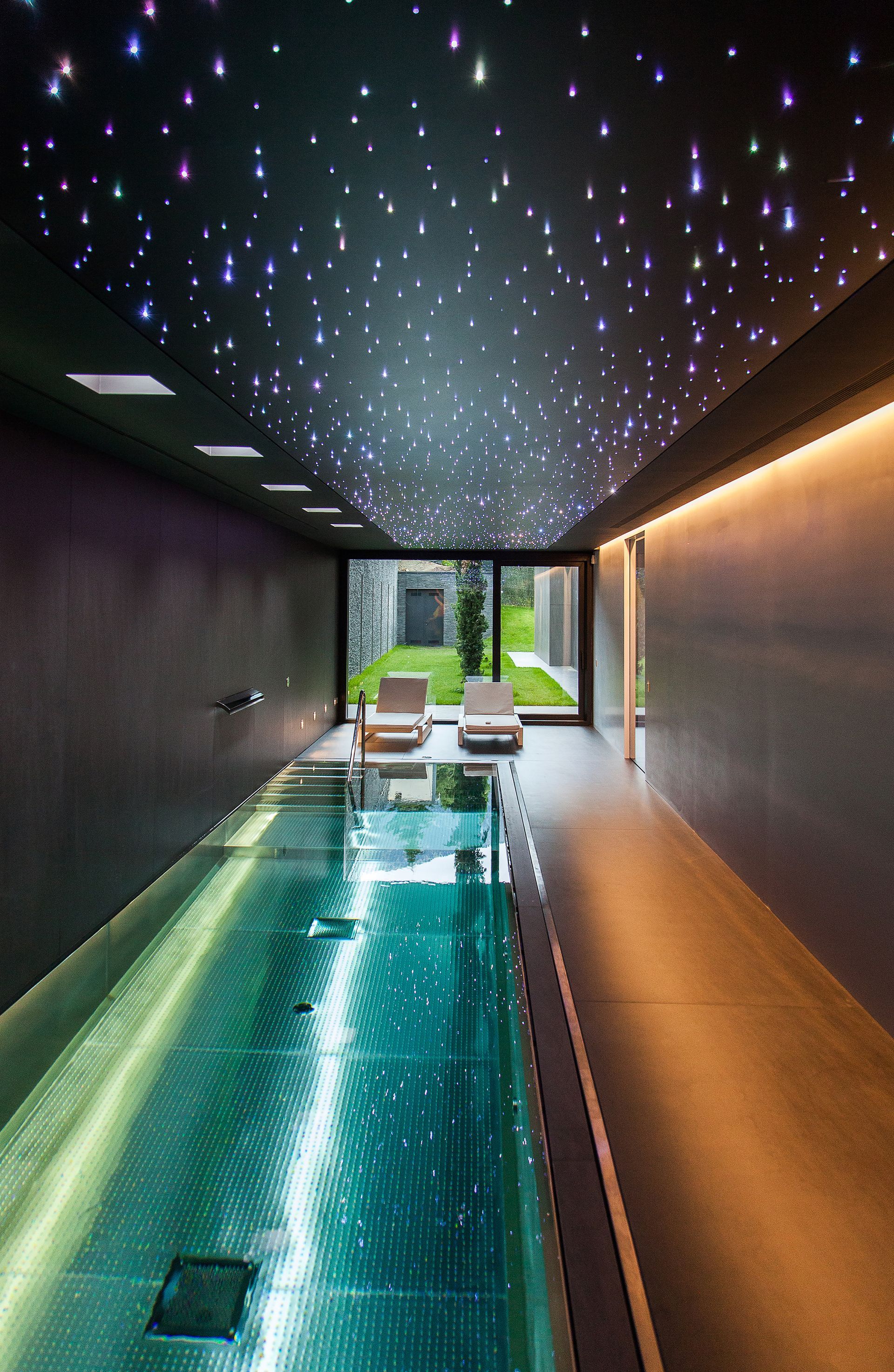Una planta es desenvolupa a nivell del jardí i concentra la zona de dia i l’habitació principal, així com un gimnàs i una piscina interior. Una segona planta, a nivell del vial d’accés on s'encabeixen dues zones d’aparcament i les habitacions individuals.