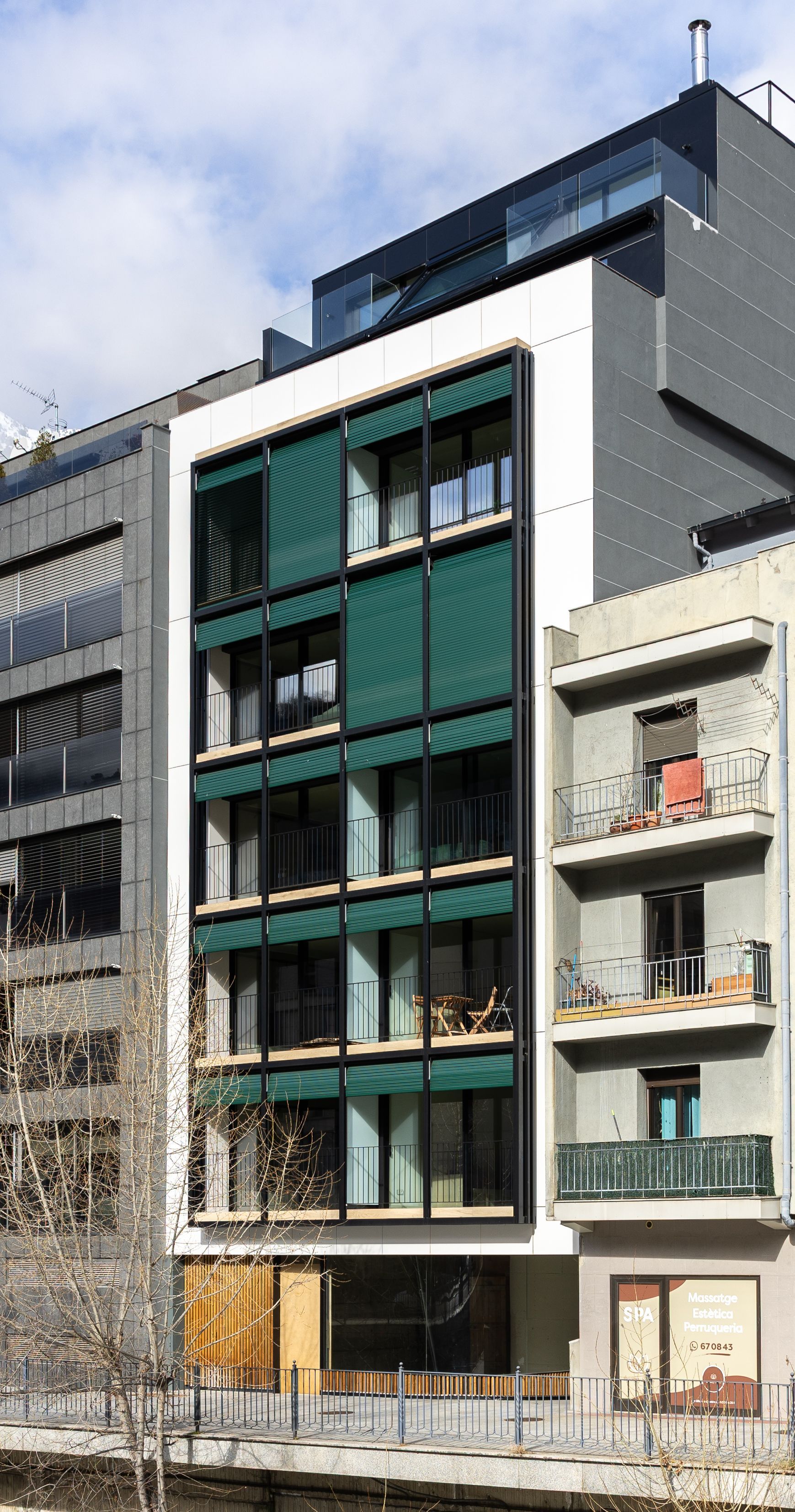 Estructura de formigó vist a base de murs mitgers i sense pilars.